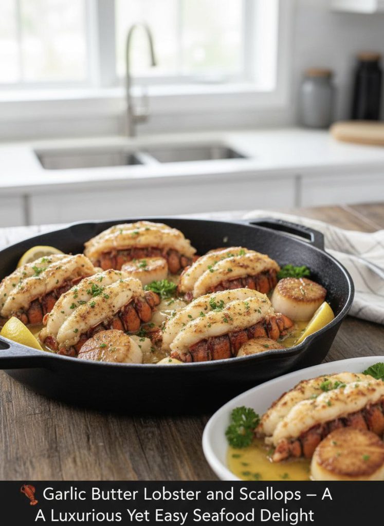 Garlic Butter Lobster and Scallops is more than a recipe—it’s an experience. Rich, flavorful, luxurious, and incredibly easy to prepare, it transforms any evening into a special occasion.